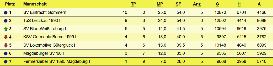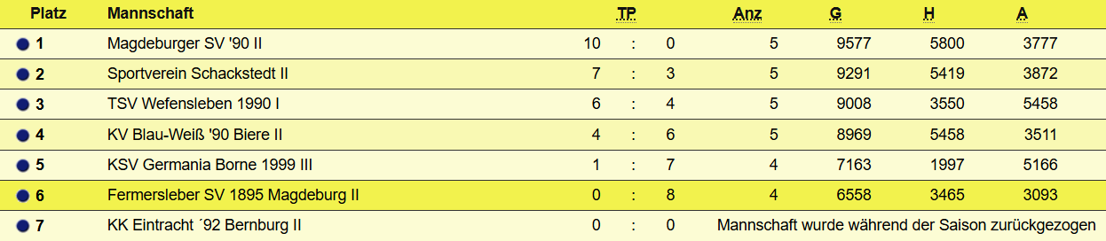 Aktuelle Tabelle Landesklasse Männer - Saison 25/26: